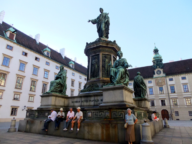 穿過新皇宮所在的這大片英雄廣場,再往裡去便為舊皇宮建築不規則串列一起。這兒有個較小的法蘭茲皇帝廣場(Kaiser Franz Platz),當中雕像想當然耳就是這位皇帝,據說角落點綴的四位女子為他前後任妻子,不過被銅綠斑痕搞得有點面目驚悚。