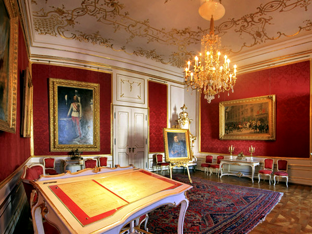 這棟殿閣於後期成為法蘭茲•約瑟夫與西西公主的居所,因此現在若進入觀覽,能見到結合公主照片與衣飾的主題展,也能從廳室佈局一窺皇室生活。我無暇詳探,不過海報上的公主的確優雅清麗,她斜望遠方,長髮在華服鋪洩而下,襯托出曼妙身段,然鵝蛋臉上的雙瞳卻是憂鬱滿溢,似乎懷想著那只殘存於夢中的自在生活。
