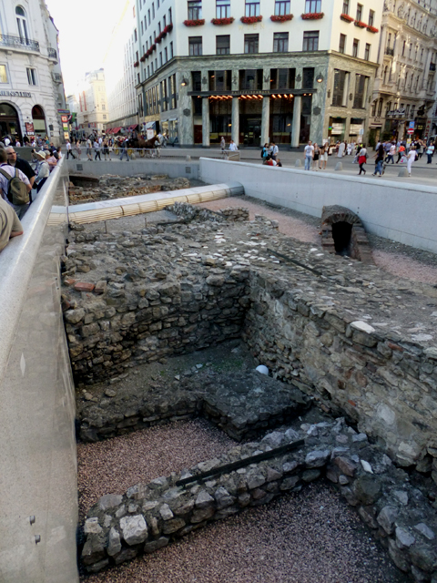 空地中央以護欄圍起,往下窺看,是傾亂的廢墟石塊。根據說明,此處為古羅馬時代遺跡,但單從這些殘留牆礎,也很難揣想當年會是何等風華。