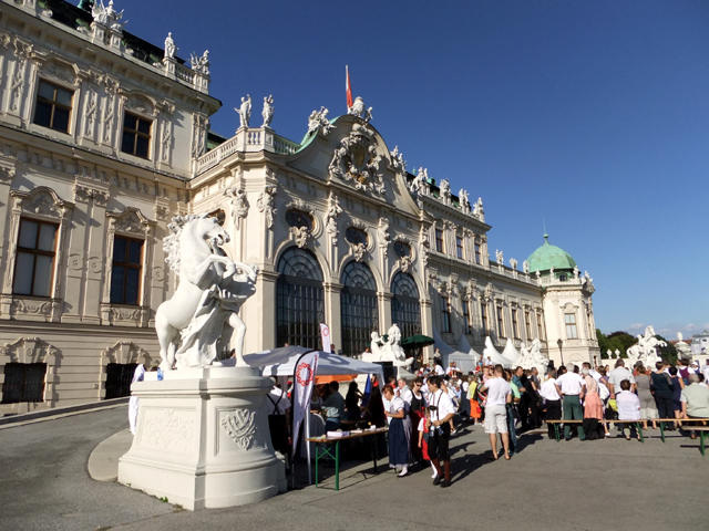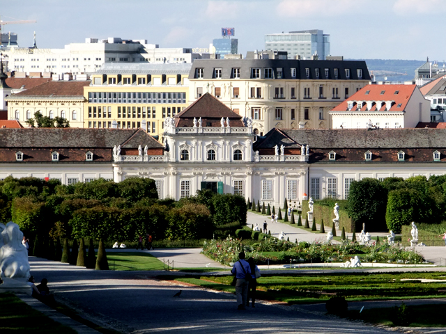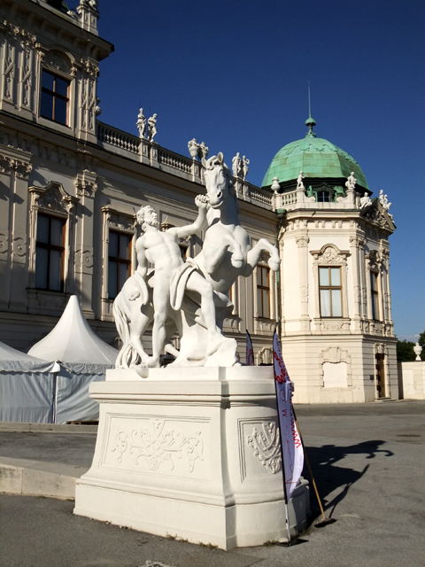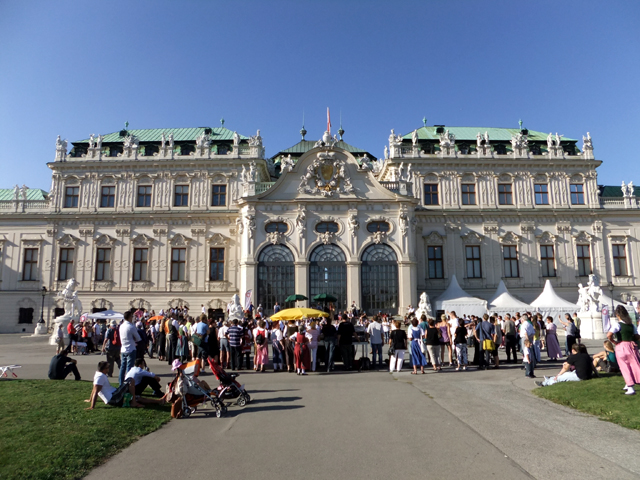 本以為整個下午都要消磨於車程,到了維也納只能直赴晚餐,怎料抵達市區日頭卻還高掛天頂,然為滿足一眾團員的購買慾,珍貴的白晝居然就耗在商店裡。但世事便是如此峰迴路轉,也不知是否為領隊的精妙設計,商店附近竟為貝爾維迪宮,一個地點滿足兩種需求,對採買興致淡泊者自可脫隊去宮裡一晃。