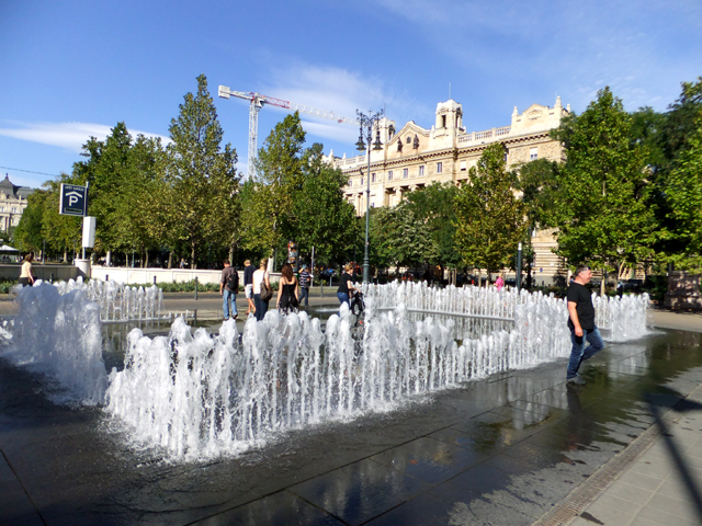 附近還有小廣場公園,在樹蔭環繞的空地間噴吐水泉。水泉自地面如迷陣或起或落,不少年輕人就這麼在裡笑鬧穿躍,搞得全身濕漉也不在乎,讓我望著望著也不禁羨慕起來。然隨年歲增長,顧忌便極易壓過衝動,想著若非尷尬除去衣物鞋襪,就是要踩著濕黏度過整晚,思慮過多的結果,自然為眼巴巴看人歡樂。