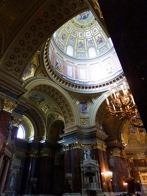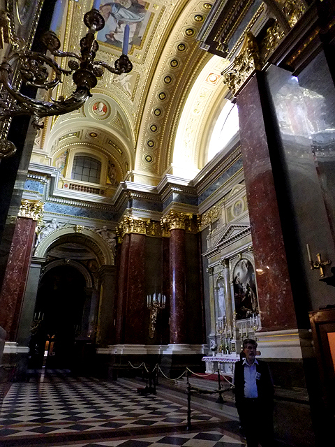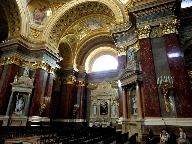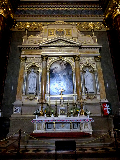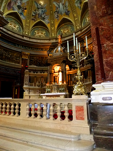 等待許久,區域開放的動作卻似停滯不見進展,主祭壇依舊與我遙遙相望。瞄了瞄剩餘不多的時間,我只能折衷走至側廊末端,從斜角端看。據說聖史蒂芬在對抗蒙古人時失去了右手,而今時這右手木乃伊依舊於此處仔細保管著,但卻不知是在哪個廳間。