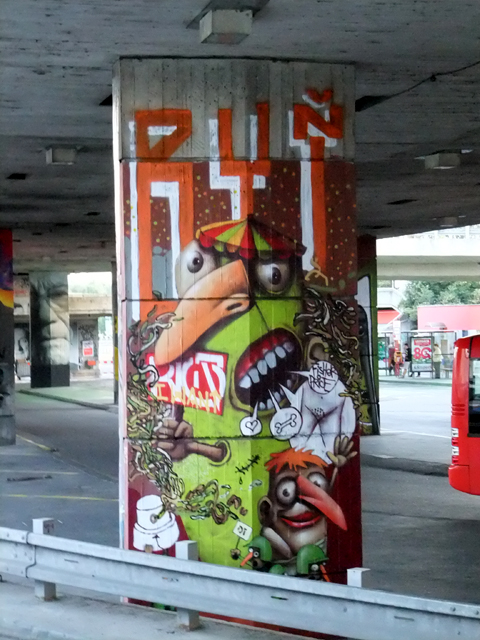集合了隊伍,大夥從高架橋下繞至對側,路上不時可見塗鴉出現於壁面橋墩。儘管環境因而搞得髒亂,但其實有不少作品畫得相當可愛逗趣,帶著想像,加入抽象拼合。見此不禁思尋,或許換個環境,這些作者便可能有不同際遇,發光發熱。然而,又怎知他們會否根本樂於徜徉於這片自由園地呢?