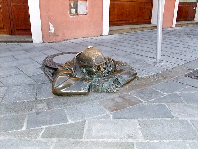 活潑氣氛也體現在路旁裝置藝術,轉個身會瞥見街角藏著鬼祟偷拍狗仔隊,不留神的話便踩到從下水孔蓋探頭微笑的工人,還有雕像一身銀白揮著禮帽,讓人搞不清會否是個街頭表演者,下瞬間便動了起來。
