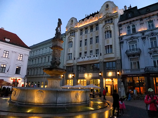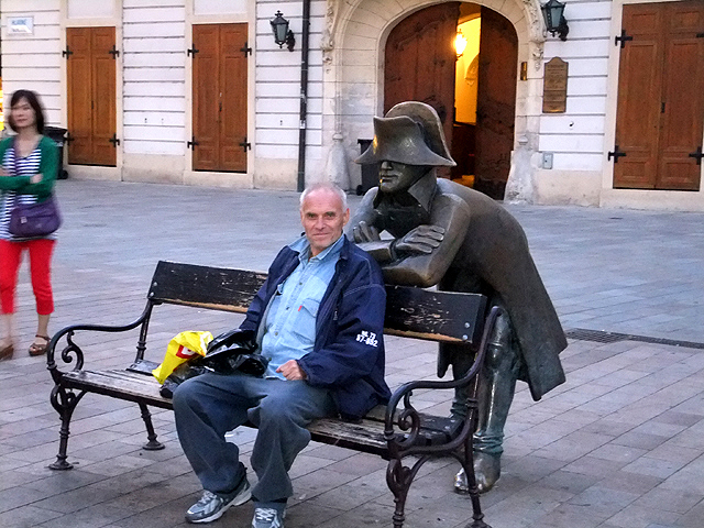 走到舊市政廳廣場,噴泉被微光打亮,場側便為已成博物館的舊市政廳,褐色大片斜簷,簡潔白牆,而鐘塔呈巴洛克式,有帶曲線的銅綠拱頂。這兒另可發現一尊拿破崙士兵,戴著典型大軍帽倚在長椅後背,本就坐那歇息的老先生見我們快門連閃也不見尷尬,笑嘻嘻大方讓自己入鏡。