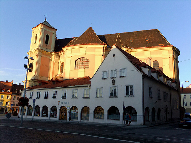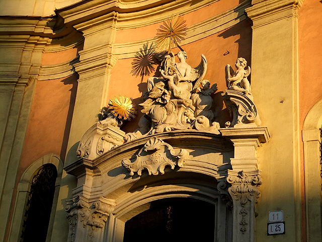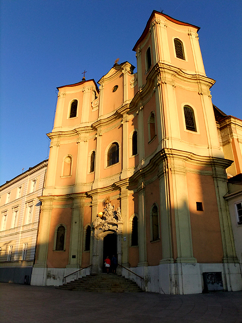 除了城堡,被旭日擦亮的還有街角的三位一體教堂(Church of the Trinitarians)。米白壁柱間以粉嫩色調刷出素淨,似擁抱狀的凹弧立面溫暖地招迎居民過客入內。我站在門口,框頂有飛聚天使持著耀芒,而教堂裡,已有不少人與神父一起作著禮拜。