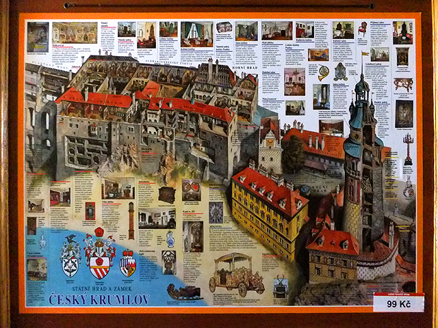 由於早期此地由羅森堡(Rosenberg)家族統治,故也留存屬於那時代的文藝復興式房間,看來簡單的廳室以掛毯或壁繪裝飾,儘管色已凋殘,天花板仍有鮮明框格整齊排列,當中綴著代表家徽的五瓣花紋章。