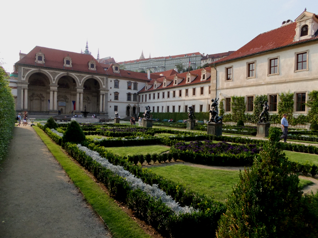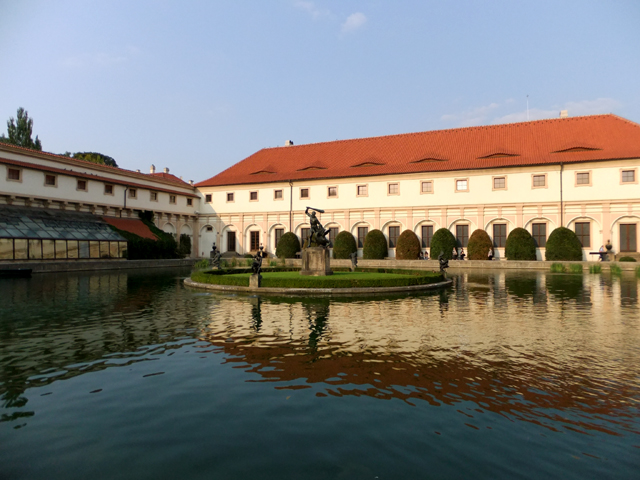 當時的我也瞧不出這兒究竟是什麼地方,端望須臾,便又穿回樹陣,跟謎樣男子再對上一眼,然後經另端的方池出去。回國查了資料才知為華倫斯坦宮(Wallenstein Palace),建於十七世紀,現在是參議院所在,似乎裏面也有奢華擺飾。不過原先主人華倫斯坦雖貴為神聖羅馬帝國統帥,卻因功高震主而被皇帝暗殺,正是所謂花無百日紅吧。