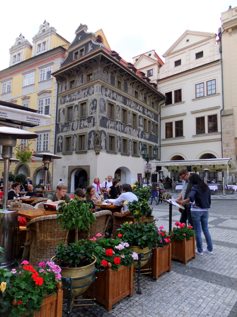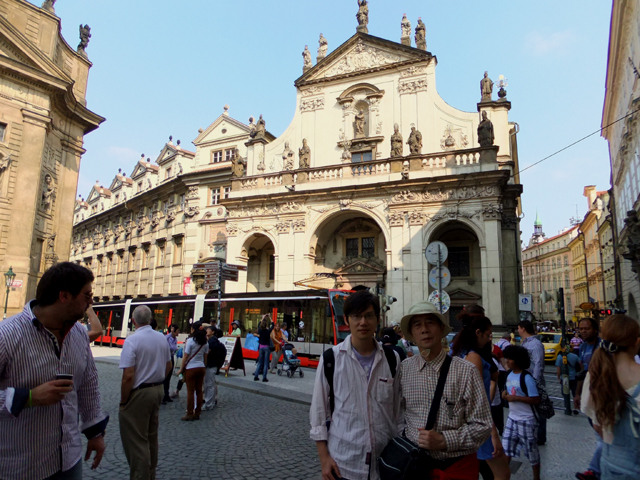 從查理大橋行回舊城區,在小販與美景的聯合攻勢下,大夥自然沒那麼容易集合完全,但也剛好讓我四望橋頭的十字騎士廣場(Knights of the Cross Square)周遭建築。