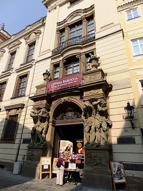 當中的十字巷口有座引人目光的門面,四名肌肉虯結的壯漢化作雕柱,成對地支撐華麗拱門,這是克拉姆葛拉斯宮(Clam-Gallas Palace),本為貴族葛拉斯的府邸,現已變成布拉格市檔案館了。在以壁畫與雕欄作飾的廳內不時還舉辦著文化活動,像我經過的此時,正宣傳著巴洛克音樂節,傳單上以戴金面具的華服伶人招攬,若非時不我與,真想隨其赴宴。