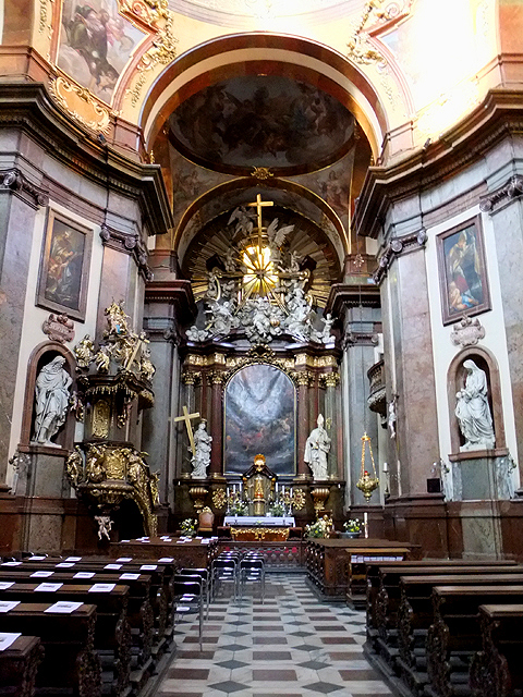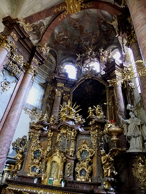 在這兒我又拿到張音樂會傳單,寫在Mirror Chapel舉行,但也沒提如何走。疑惑地跟旁人往前行,另一端的出口居然便是查理大橋了。我望進左手邊的聖薩瓦特教堂,發現標著今日免費導覽,便放膽踏入。