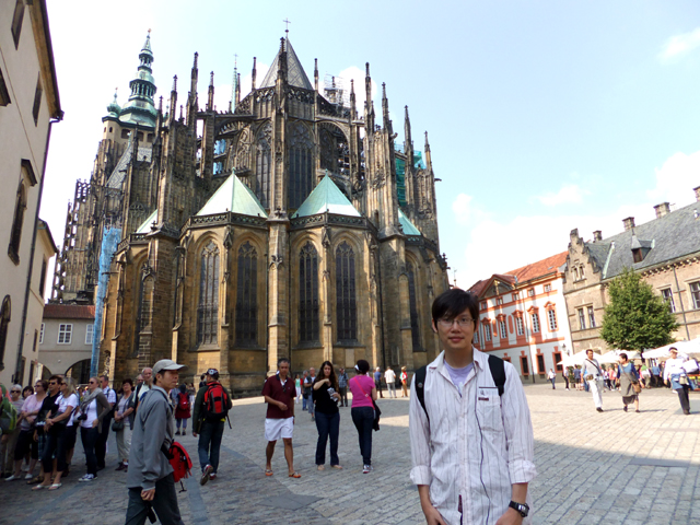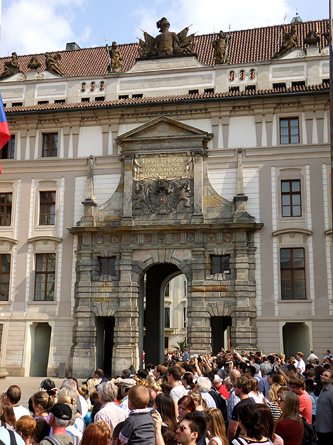 經過聖維特教堂,再從第二中庭穿出,以為會是來時之路,然看看週遭景物又疑惑了,原來這回我們換了方向,走至稍早未到的第一中庭。也不知為啥,鐵籬內外擠滿人潮,研究半晌才知剛好是衛兵換班時刻。我探頭探腦找著縫隙卻什麼也沒能瞧清,只好氣餒地等散場。