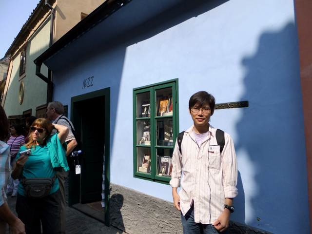 當中二十二號這間吸引最多人潮拍照留念,並非有啥花巧設計,只因卡夫卡曾居住於此。他的文章據說帶點陰暗風格,有著值得思索的想像空間,然在他四十年生命中卻很少獲得迴響,是去世後才受到推崇。說來汗顏,雖他是赫赫有名的文學家,我卻未拜讀過其著作。看櫥窗內擺放的一本本書籍,也許某天該買來認真感受吧。