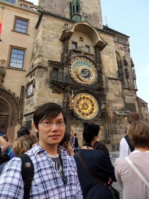 等了半晌,時間終於走至整點,上鐘盤兩側的人偶開始搖頭晃腦,鐘頂雙窗也同時打開,讓十二門徒成對轉出與我們見面,遠距離看去,都覺模樣精緻。只惜表演時光短暫,僅這麼招呼一圈便結束了,怎不多繞幾回呢?