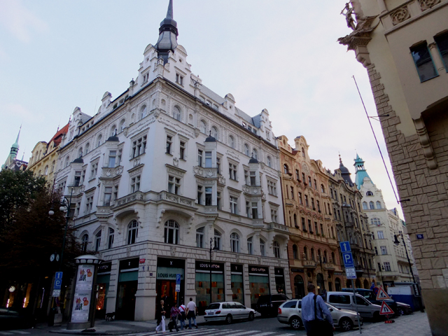 這麼兩旁探看,一路行近街尾,我才省起這區是該有些猶太教堂的,怎麼都不見相似建築?莫非皆低調隱身至巷弄裡?我的小街道圖重點放在舊城廣場週邊,沒註記到這麼遠,唯一有的註記只是個方向,指著捷克愛樂管絃樂團所在的魯道夫宮(Rudolfinum)。