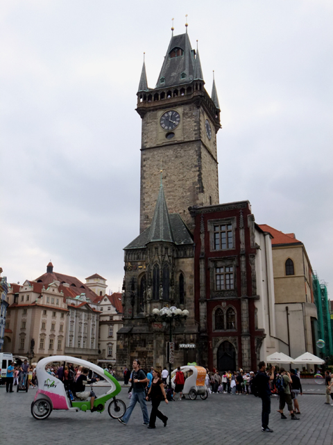 由火藥塔一路筆直往前走,終於大夥甩開兩旁夾道建物,迎來開闊的舊城廣場。正對我們的便是舊市政廳鐘塔,不過才按了幾下快門,就被領隊揪著集合,說先把事情交代完,再解散讓大家盡情逛。