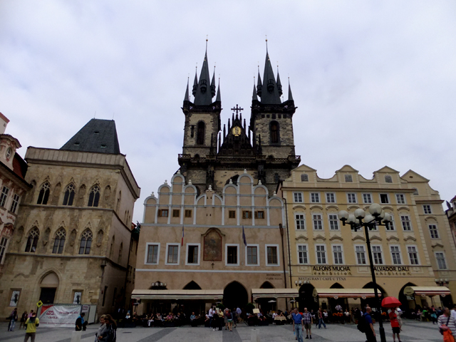 菠丹妮所在之處是個被樓房包圍的小小廣場,因位於提恩教堂的後方,故稱作提恩中庭。我四望片刻,其中一側的二樓為拱廊,上方斑駁牆面倒還隱隱有著褪色彩繪,一樓則都被商家佔據了,連廣場都散佈著露天咖啡座。其實該學些遊人閒適在那兒啜飲享受時光,只是這緊促行程逼著我四處跑趕。