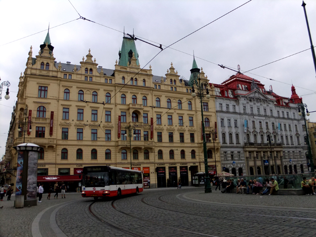 由於新城區北面的舊城區禁行大型車輛,因此酒足飯飽後,我們從外圍慢慢晃盪著步入。雖然如蛛網交錯的電車纜線將天空切分得紊亂,但房舍頂上的山形牆與塔樓卻各自變化,像參差山巒與樹梢繽紛綿延。