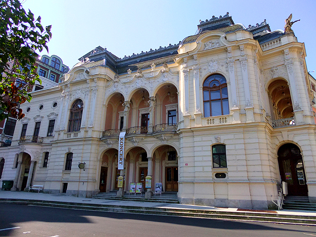 順著河流再往前走,一反適才帶著輕盈感的木造拱廊,在岸旁的是以厚重石柱支撐的磨坊溫泉迴廊(Mlynska Kolonada)。新古典主義風格構築的希臘神廟式門面,用科林斯列柱、花串飾帶、山形門楣砌築而上,簷頂更外加一尊尊代表十二個月的人物雕像,很自然地散發一種威嚴霸氣。