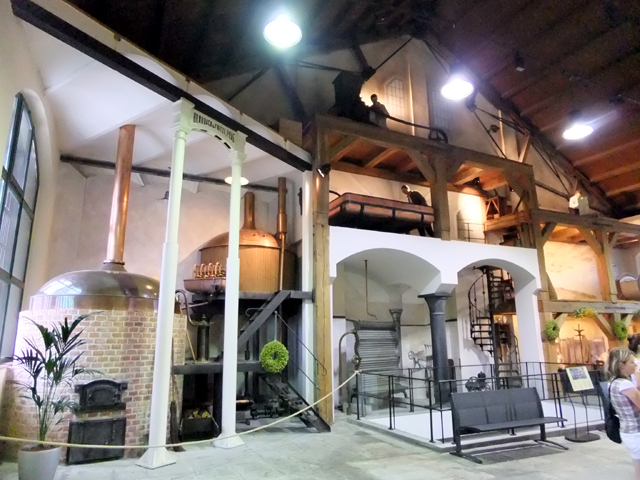 再後頭就是為數眾多的大型鍋爐,黃銅色鍋蓋如倒立漏斗接著排氣管穿過天花板,有幾個還在老實地加熱攪拌著,讓人覺得有點窒悶。如果全數鍋爐都工作起來,不知會不會站著站著,人就被蒸熟了。