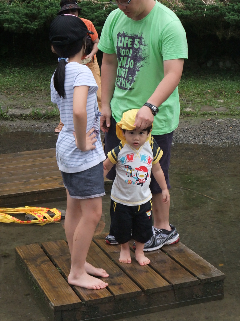 娃兒們就比較省事,鞋子一脫踩水過去。