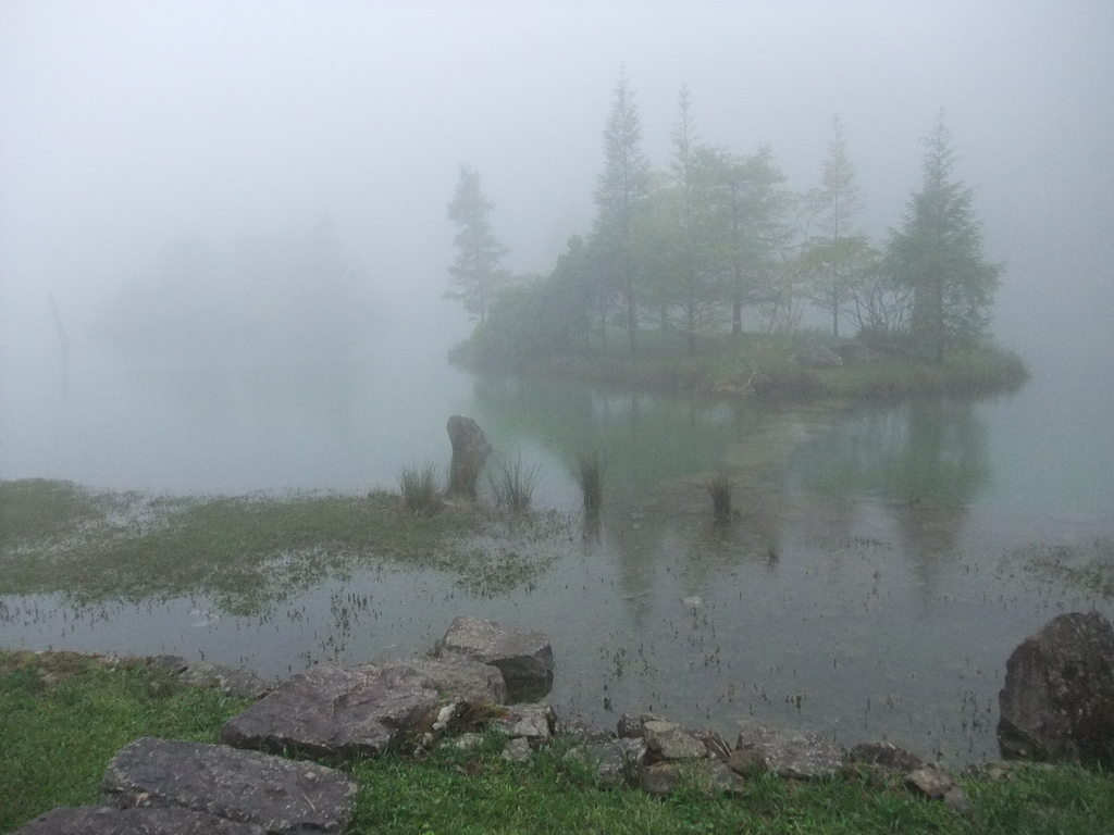 快接近旅館的馬路邊,可以看到林後的明池,