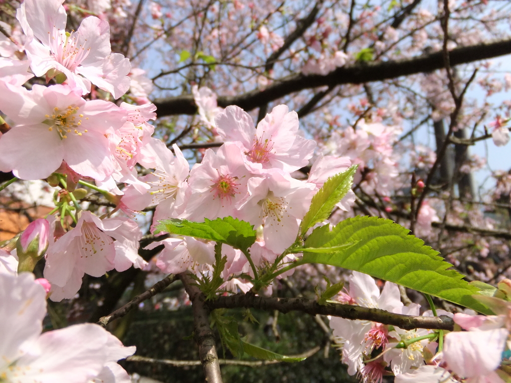 櫻樹主要是種在塔樓與環形步道間,隨著坡度有時瓣葉就在隨手可觸之處,