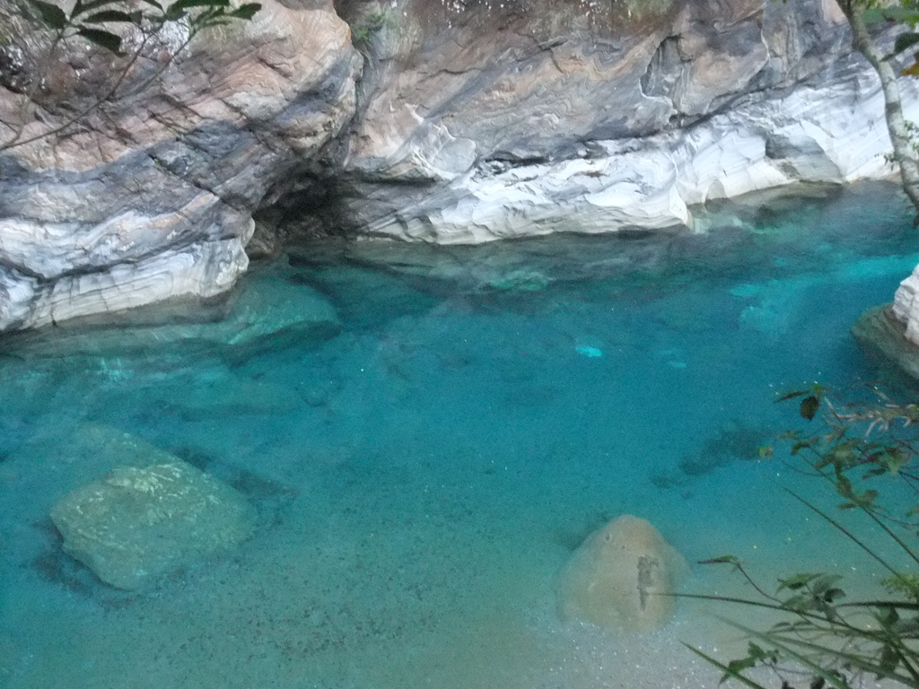 這裡的溪水在某些流段呈現漂亮的透藍色,搭著岩壁刷出的石紋,很值得好好踱步欣賞。