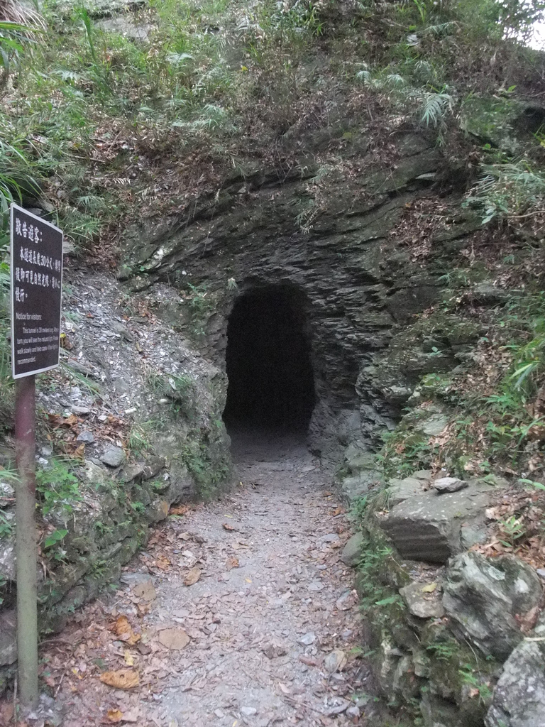 步道大概有點冷門,濕濕滑滑的,還得鑽過黑暗小山洞。