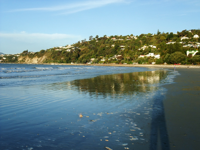這個濱海城市,號稱一年四季都是豔陽,我們或許命不好,偏偏遇上陰雨,不過在此黃昏時分,海天之間終於綻出它原有的晴朗。去披薩店前,特意地,我們先循小路鑽向海灘。