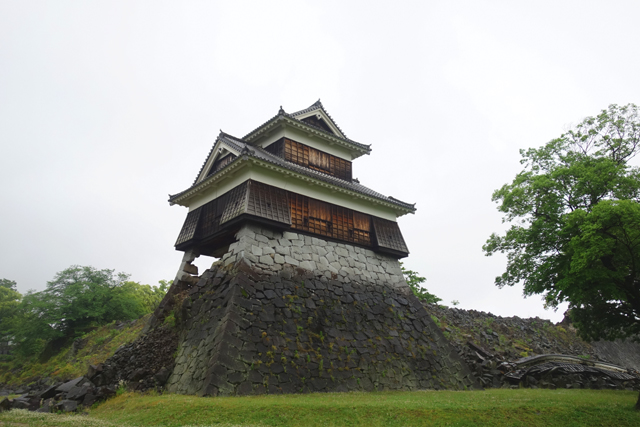 「不開門」這名稱很令我好奇,細查後發現還真的平時都不會開,因為傳統上東北被日本視為不潔的鬼門,若由防禦面論,維持常閉也較好,畢竟它離天守閣相當近,有陡峭捷徑快速通抵。這樣的低調有其好處,讓它成為難得殘留的原始櫓門,然經過這一震,圖板上的它已成一堆殘骸,很令人望之唏噓。
