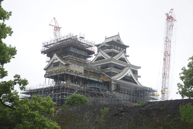 所幸,日本人的堅毅與技術相當強大,身為首要修復目標的天守進程還滿快,看著偶爾從網頁迸出的報導照片,很讓我期待能在近處和它相望的時日。可是這期待或許太濃烈了,大神手一揮,就敲定了我的九州旅程,也讓要不要排入「熊本」成為為難的事。去,看見的只是殘缺,也無法深入了解。不去,人生如此無常,誰又知道會不會就此錯過?思考了許久,最後決定依從緣分,儘管不完美,仍是它的原本軀殼。