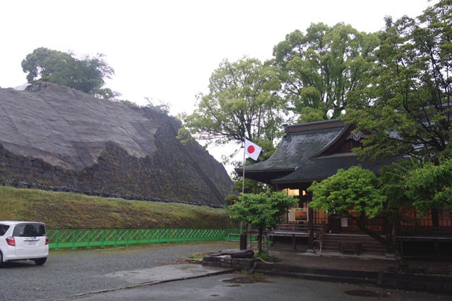 再過去的路段也是類似命運,曾經有「北十八間櫓」與「東十八間櫓」轉折串連,在邊角處守望,現在已無任何屋房留存了,連牆體都大幅崩落。鄰近的「熊本大神宮」同樣災情慘重,牆下的一棟長殿直接被壓垮,亂石殘骸直逼本殿。即便現在清空了,揣想當時工作人員的驚恐、可能的傷亡,就不禁慢下腳步,望著空地發怔。