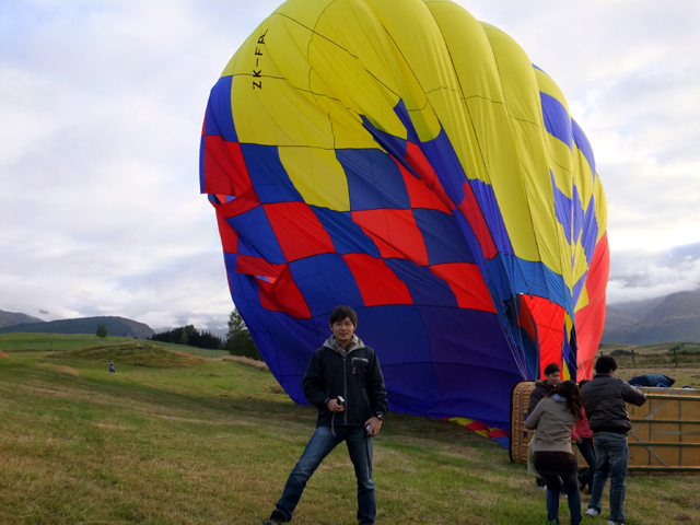 從雲端飄落實地,心中仍擁抱著適才所見奇景。幫忙將熱氣球滾壓放氣,摺疊收入車裡,大夥一同吃著小餐包,啜飲紅酒,舉杯慶祝。