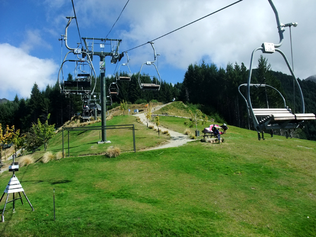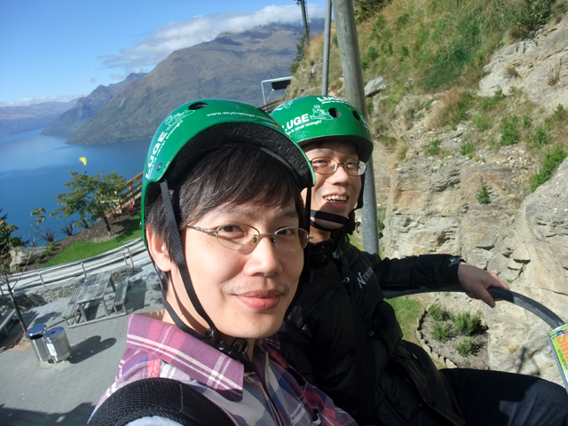 在這充斥冒險氣氛的小鎮,纜車當然也不安於平凡,結合了高空彈跳,與一種當地稱為luge的小賽車。大家商議一會兒,都買了雙段的票,一段是初階的scenic,另一則為進階的adventure。