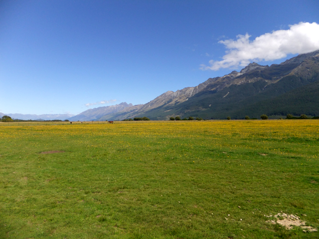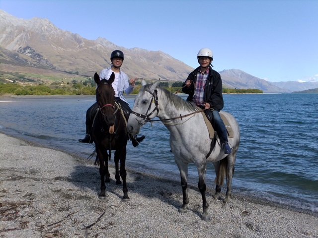 下午另有個自費騎馬活動,當初其實不太感興趣,但其他團員都有報名,網路文章也說可以嘗試看看,就隨緣參加了。馬場在格林諾奇(Glenorchy),瓦卡蒂波湖的北方,所以我們得繞著湖岸山路,一路北行。