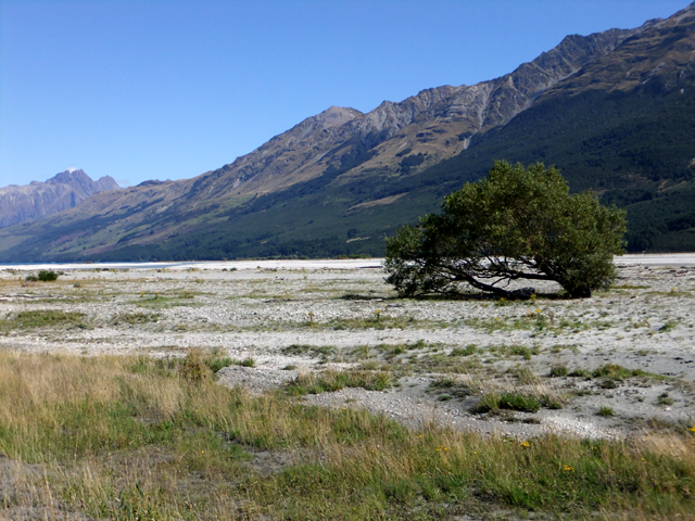 周遭曾被「魔戒」取景的山勢灰黑冷峻,領隊的女騎士在我們附近奔馳著,一面指著遠方,說白袍巫師薩魯曼所在的Isengard就在那邊。還有處名為Paradise的地方,是精靈女王的領土Lothlorien。不過我沿著Dart River往前望,視野一片蒼涼,很難跟印象裡林木高聳、幽靜深邃的仙境作連結。