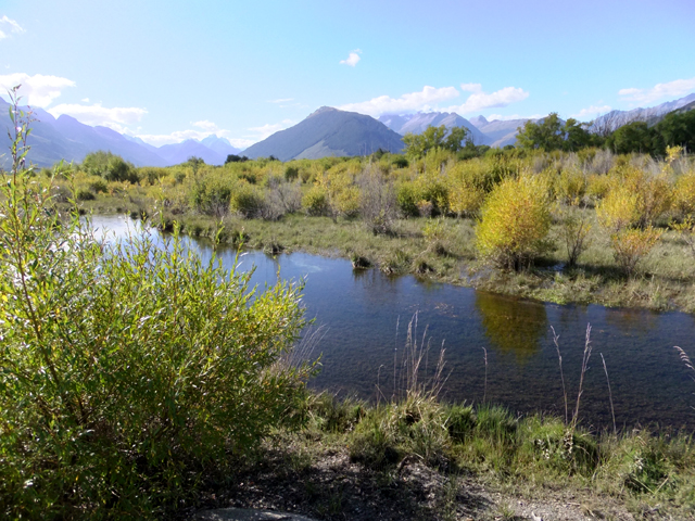 終於,河流開散成近湖大小,矮草也漸化作灌木,團繞著幾個小水塘。我們在此稍作歇息,拍拍照,也讓馬兒隨意啃些樹芽。我梳理Baxtor的粗硬馬鬃,摸著溫滑毛皮,悄聲與其說話,感謝牠載我一程,不知牠能否感受我心意。