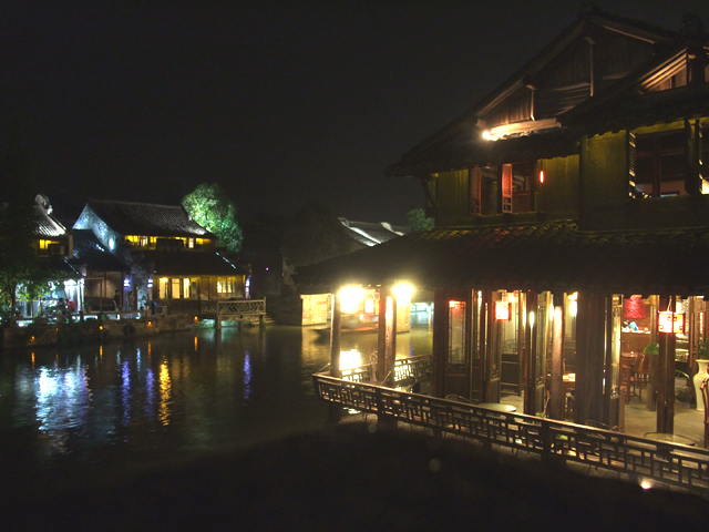 由於西市河北岸被民宅盤據,因此我只能從夾道屋舍間的巷道往回走。或許某些矮房是商家,不過在這樣的夜裡,也僅有幾間小客棧還點著燈,等待遊人投宿。想了想,這兒房間雖看來古樸,然在水畔入眠,待晨光輕灑,推窗便是粼粼波影,倒很令人心醉。
