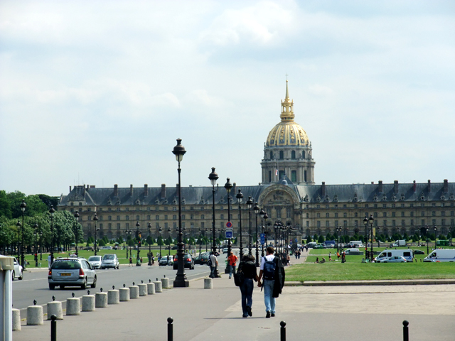 行到另一端,拿破崙陵寢金頂正在傷兵院後閃耀,雖然有點猶豫要不要走前至門口,不過看看時間,又想想痠疲的腿,要再跨越這塊大廣場應是不太可能的事。