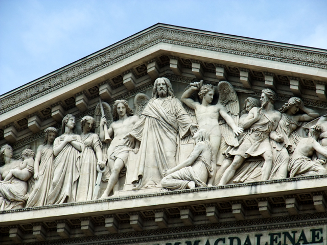 歸途路上又經過瑪德蓮教堂,這棟教堂類似純粹的希臘式神廟,沒有作過多的花式變體。沉重列柱架構出莊嚴氣氛,三角楣上則以耶穌為中心,描繪最後的審判。看著時間還有些微餘裕,就進去探訪一下。