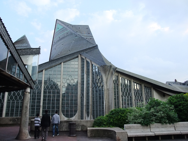 最後我們抵達古市集廣場,這兒也是聖女貞德戰敗被俘,在不公平的宗教裁判後,火焚升天之處。現在一棟不規則線條的新式教堂屹立於此,悼念著她的一縷芳魂。