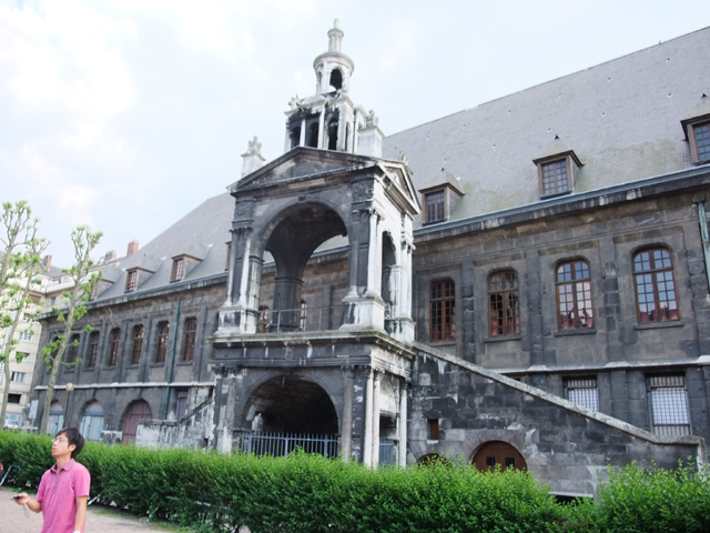 下車的地點是個小廣場,旁邊有座石造建築,寬廣立面整齊排列窗台,大門開於二樓,由兩方長斜坡交會。中央門廊高高聳立,希臘式三角楣與拱柱,加上方圓層疊的塔尖,顯現不凡氣勢。很可惜地,整座牆面似是滿佈硝煙烏塵,有種被廢棄的蒼涼。