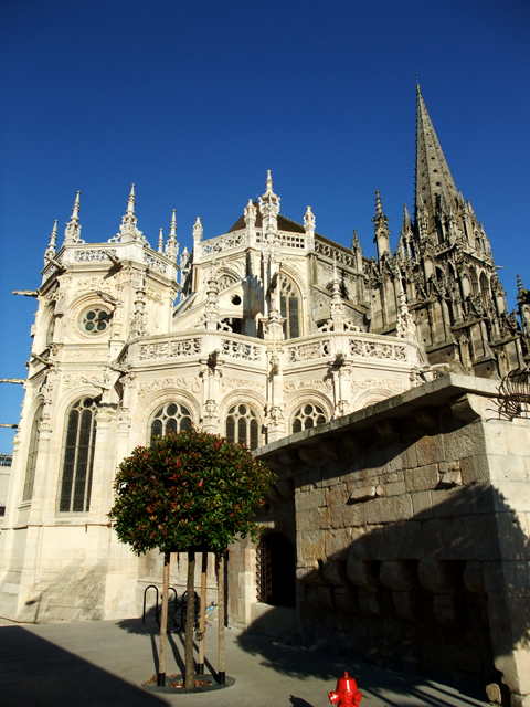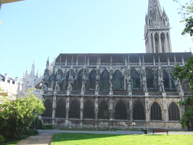 昨天沒前往的城心處有個簡單禮拜堂,略微裝飾的尖拱窗,但無塔無扶壁。看指標似乎被改建成諾曼第博物館,但從窗外窺看,沒能見著什麼。