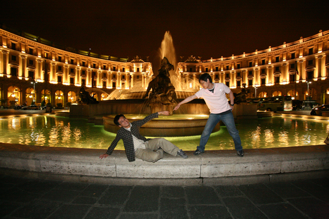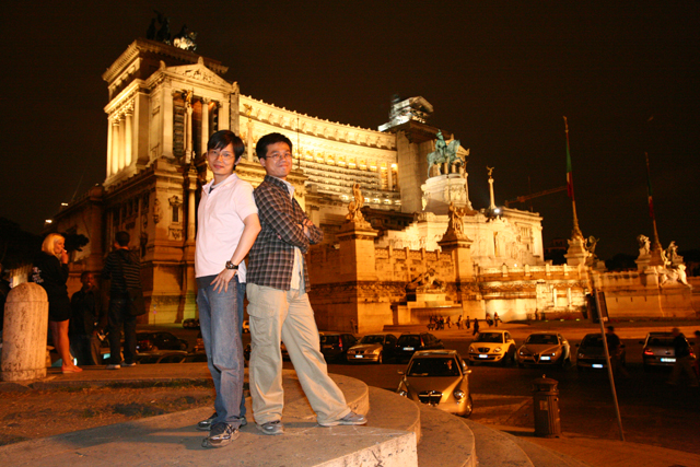 用完晚餐,是我們在義大利的最後行程,羅馬夜遊。據說為了幫我們拍下清楚夜景,還找來了專業攝影師。不過沒想到當小客車開了門,下來的居然就是白天的女導遊,果真是生意人,從早至晚的商機都被她包了。