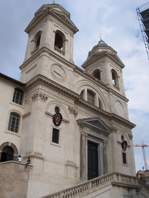 而廣場側邊,一寬面台階沿著傾斜地勢,攀上丘頂的聖三一教堂。步階在中段處收合成看台,之後又再張繞至教堂前,形成美麗的流線。從明信片中觀之,當扶手矮牆都擺放上盆栽時,整面的花團錦簇,在曲繞階面漾漫而開,的確美不勝收。但眼前所見的,或許因花季已過,只是散落叢聚的休憩人群,踞坐在階邊懶洋洋地看著街景。
