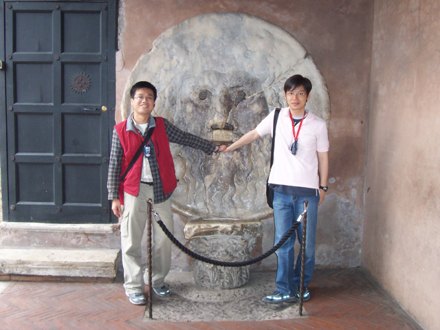 原來這名為柯士美敦的古老教堂,就是大名鼎鼎的真理之口所在。前廊左側,一塊雕著人臉的圓石板,凹凸磨蝕的表面,看起來像是凌亂的鬚髮,當中深凹眼口,懾人地張怒著。