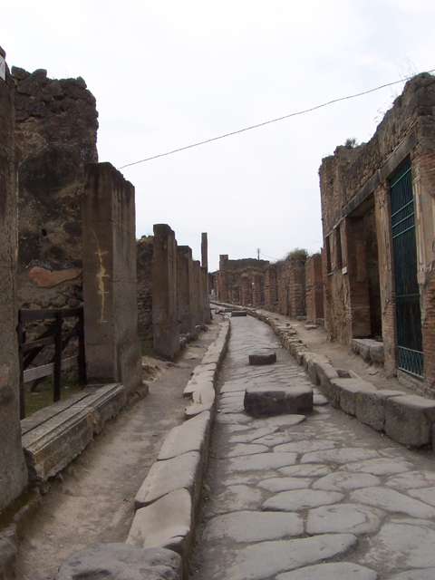 龐貝這個城鎮看來似乎有著相當規劃,棋盤式的建築分布,縱橫道路,一眼望去的住宅商家風格都極為類似,加上大多數都崩落成斷壁殘垣,跟著導遊左彎右拐,一下子便讓我失了方向。