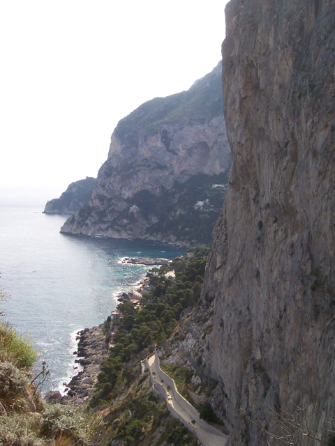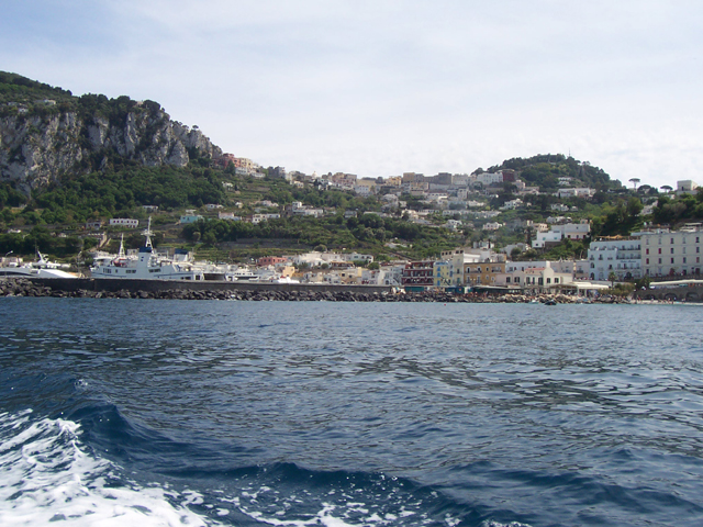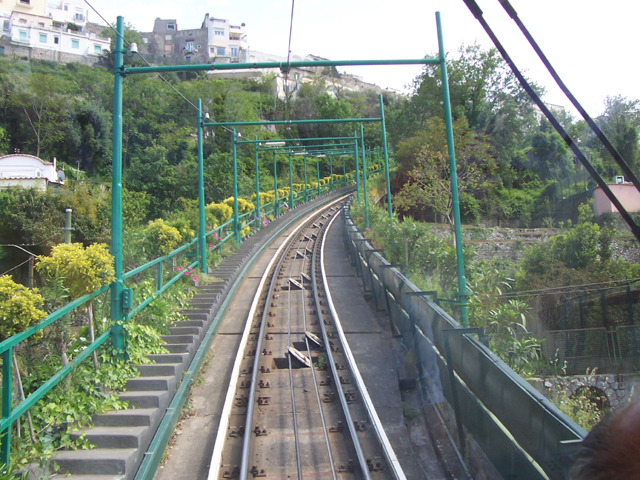 換舟行回港口,我們搭上纜車,前往位於高坡上的旅館區。卡布里島外形有點像是骨頭,中間狹處是觀光客聚集之地,而佔地較小的一端是有錢人別墅區,包含最高峰的另一端則是原居民的城村。