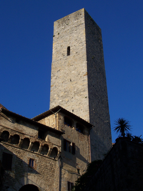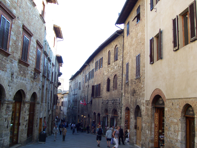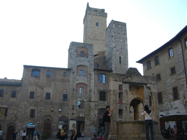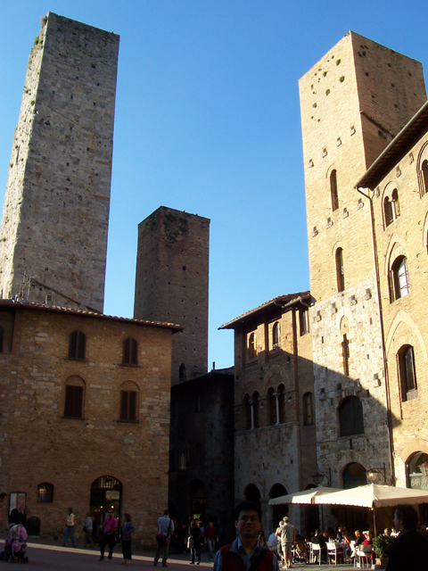 離開了西恩納,遊覽車在一片綠意中繼續蜿蜒前行。須臾,我們在一個小公園外的城門處,步入聖吉米那諾,一個四處望去皆是高塔的山城。